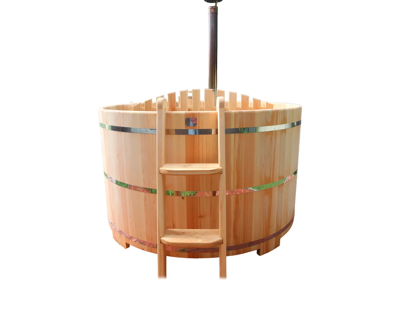 • Фурако круглая из кедра с литой термопластиковой вставкой с внешней печью Это уличная подогреваемая купель с круглой внутренней чашей из термопластика, которая имеет цельную форму вместе с сиденьями и дном. Для удобства пользования купель фурако оборудована приставной лестницей. Подогрев воды осуществляется за счет внешней печи с дымоходом. Термопластик устойчив к воздействию температур, облегчает уход за фурако и увеличивает срок ее службы. Парение на свежем воздухе – это отличный способ укрепить здоровье и поддержать организм в тонусе.